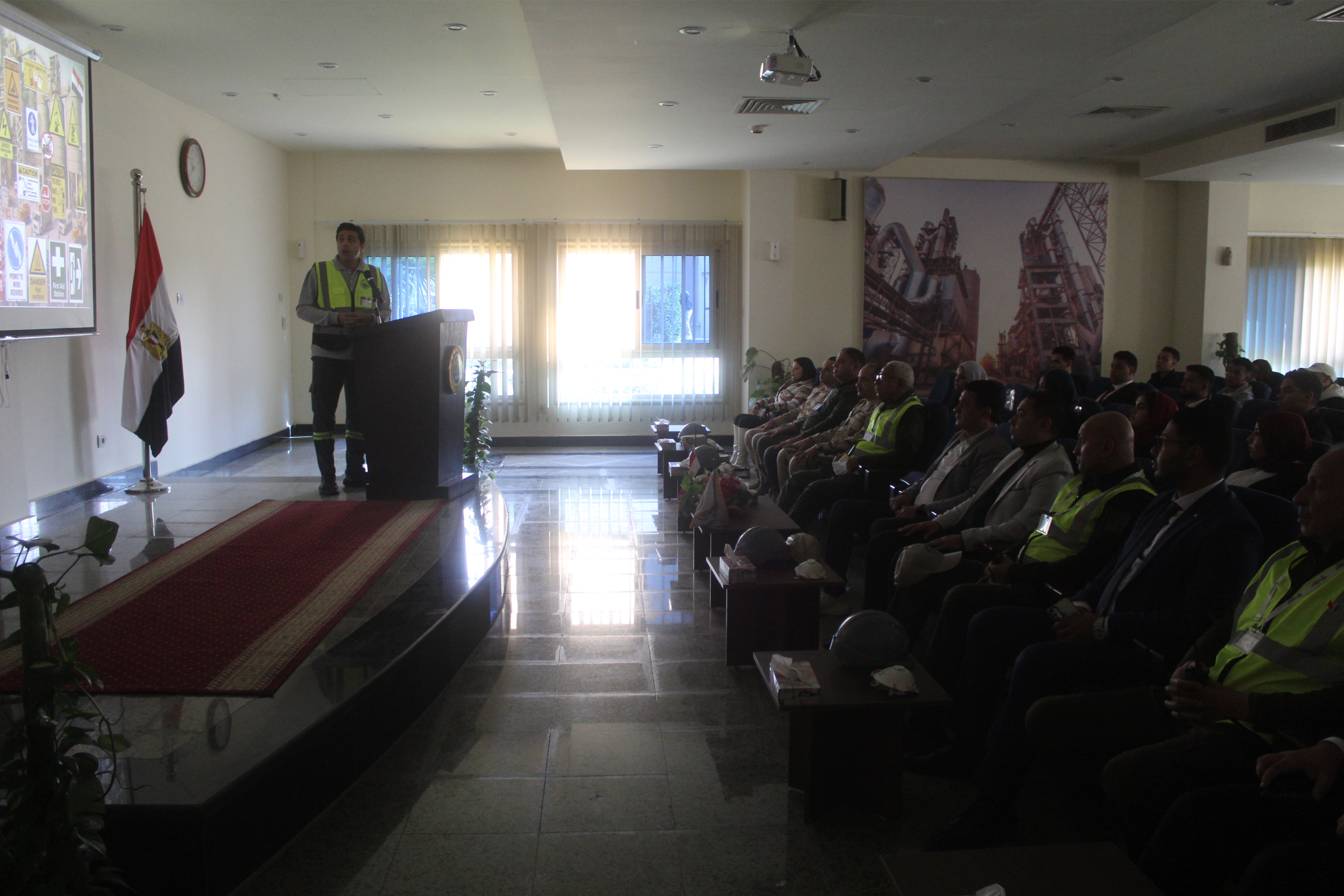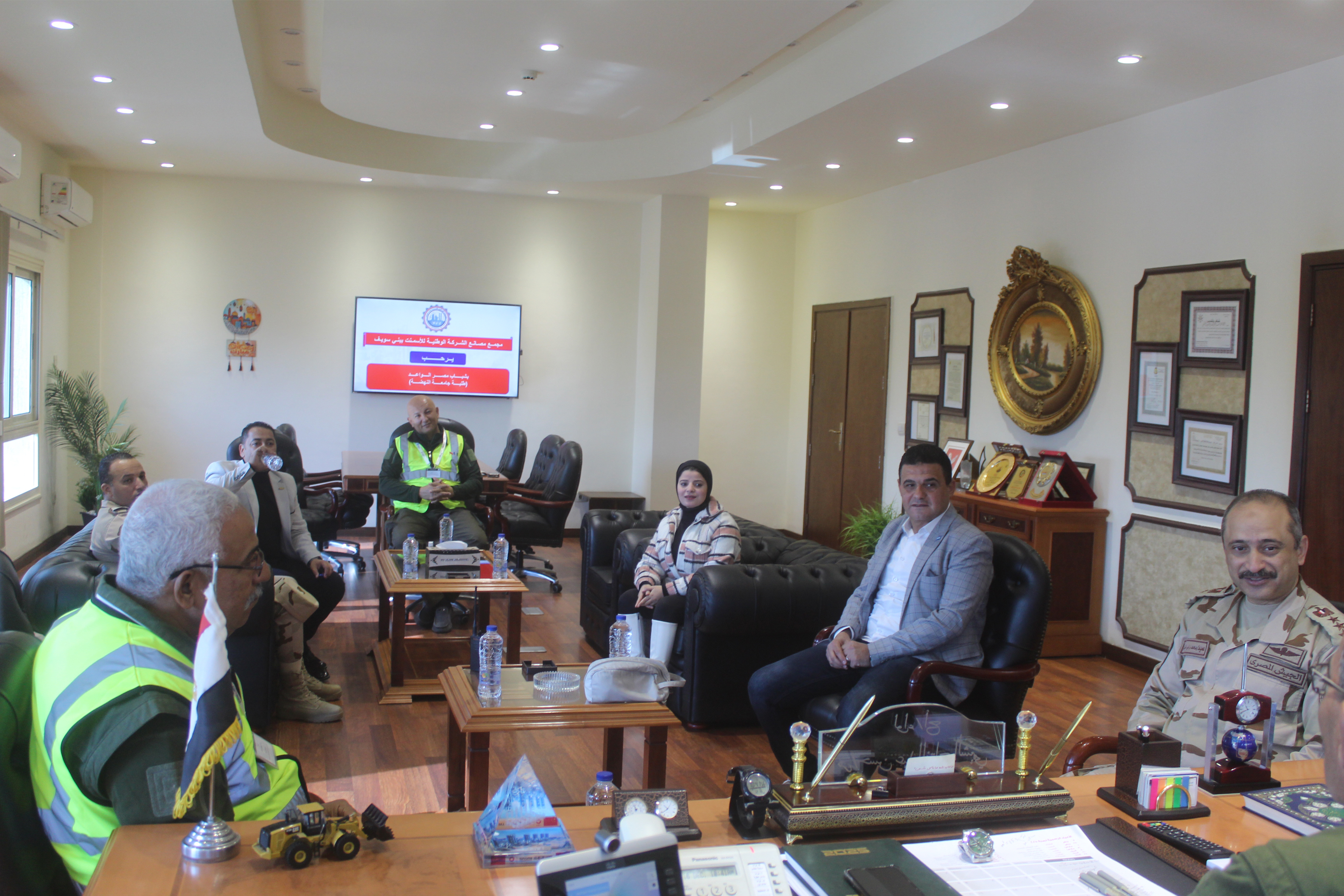 Image the National Company for Cement in Beni Suef is distinguished by having the largest cement factory in the Middle East and the world, including (6) cement production lines in one place.