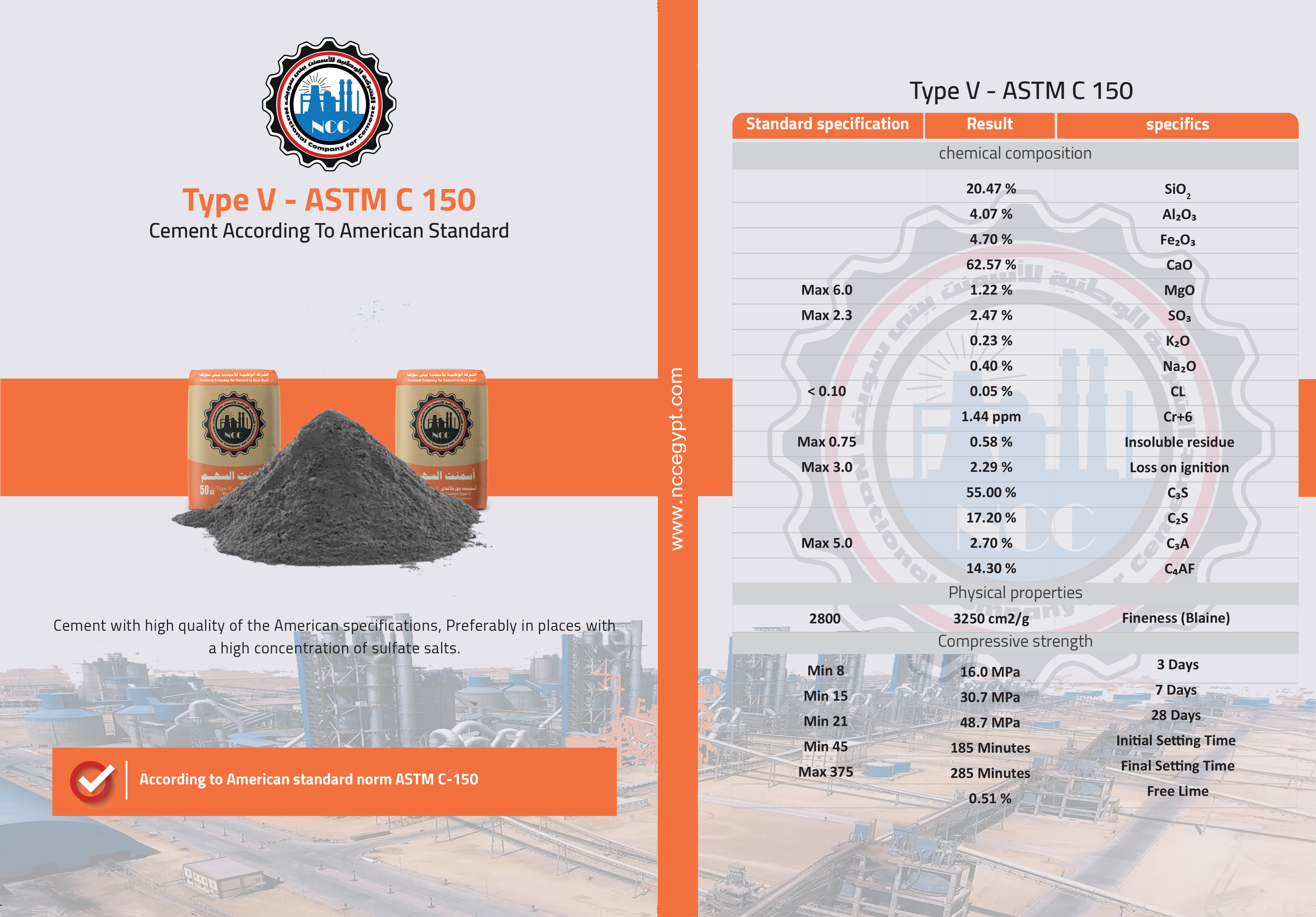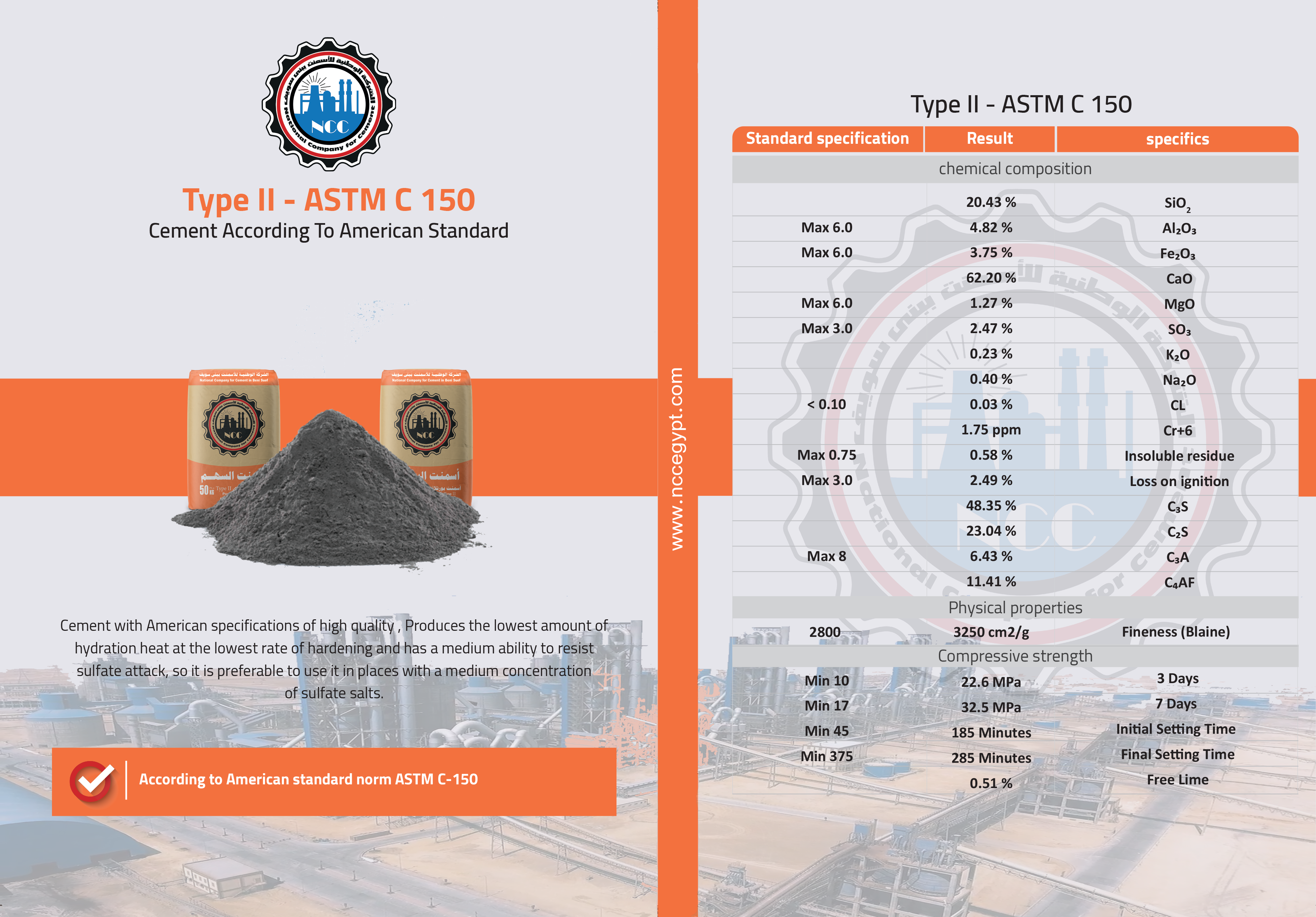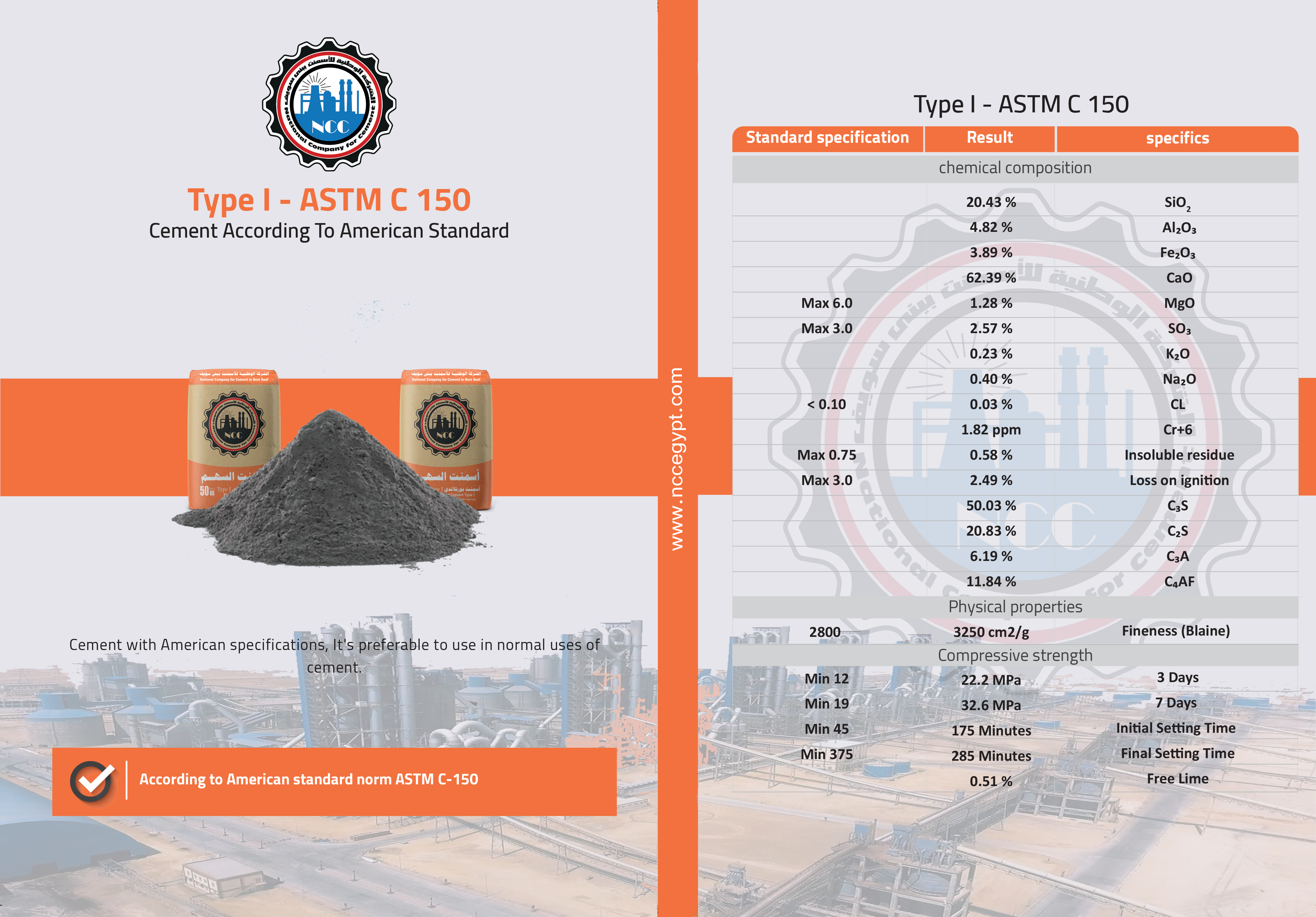 The complex of factories produces all types of clinker and cement of different grades according to the Egyptian / European / American standards. Bulk Cement is packed in paper or plastic sacks, weighing 25/50 kg, as well as in jumbo bags, weighing 1/1,5/2 tons, according to the customer's request.